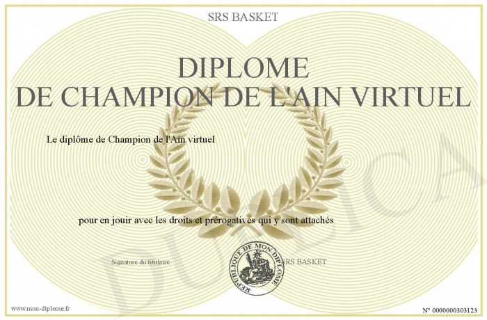 Envoyez par email votre Diplôme de Champion de l'Ain virtuel personalisé
