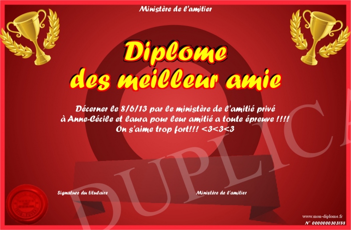 Envoyez par email votre Diplôme des meilleur amie personalisé