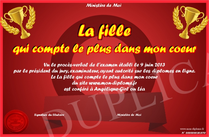 Envoyez par email votre La fille qui compte le plus dans mon coeur personalisé