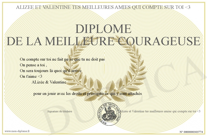 Envoyez par email votre Diplôme de la meilleure courageuse personalisé