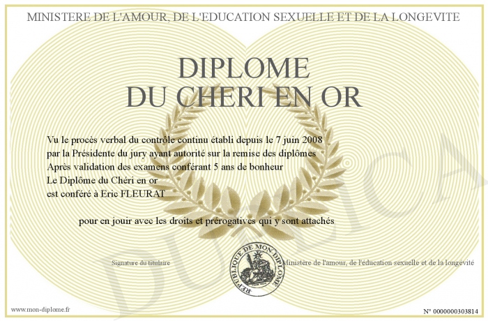Envoyez par email votre Diplôme du Chéri en or personalisé