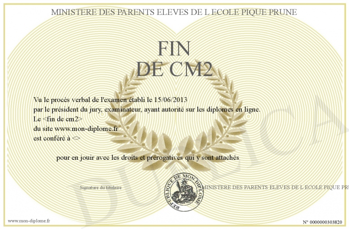 Envoyez par email votre FIN DE CM2 personalisé