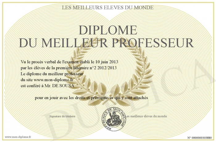 Envoyez par email votre diplôme du meilleur professeur personalisé