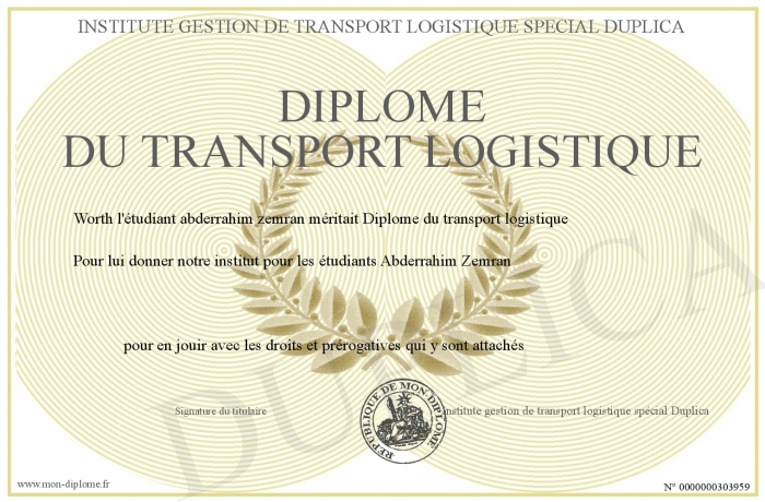 Envoyez par email votre Diplôme du transport logistique personalisé