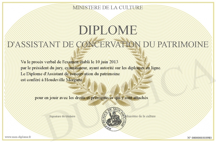 Envoyez par email votre Diplôme d'Assistant de concervation du patrimoine personalisé
