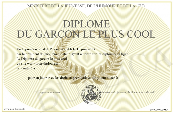 Envoyez par email votre Diplôme du garcon le plus cool personalisé