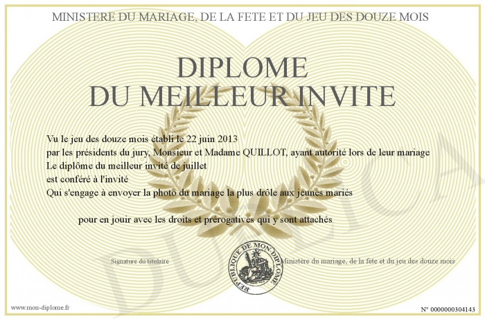 Envoyez par email votre Diplôme du meilleur invité personalisé