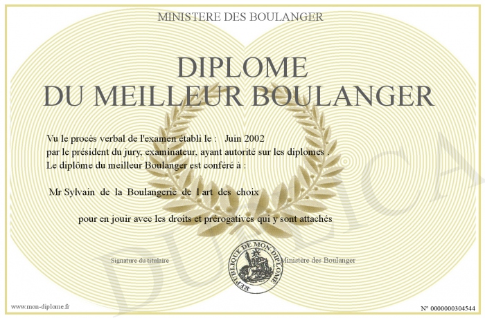 Envoyez par email votre Diplôme du Meilleur Boulanger personalisé