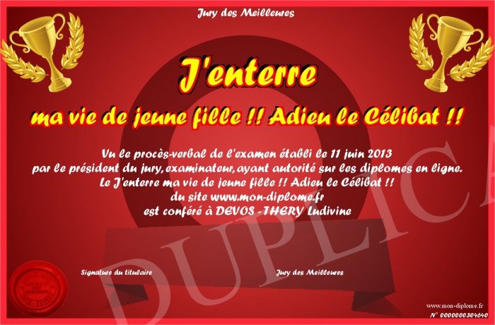 Envoyez par email votre J'enterre ma vie de jeune fille !! Adieu le Célibat !! personalisé