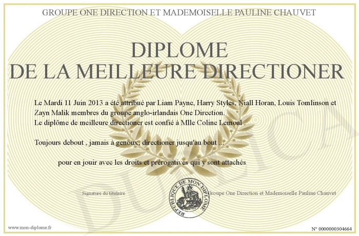 Envoyez par email votre Diplôme de la Meilleure Directioner personalisé