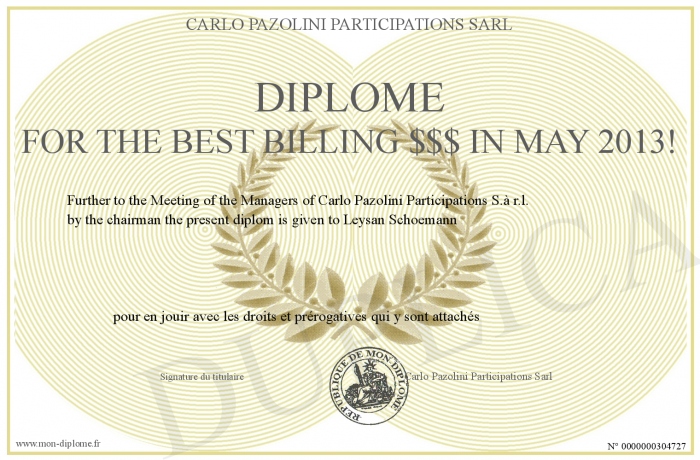 Envoyez par email votre Diplome for the best billing $$$ in May 2013! personalisé