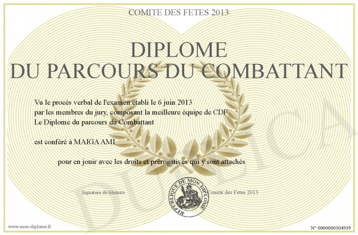 Envoyez par email votre Diplôme du parcours du Combattant personalisé