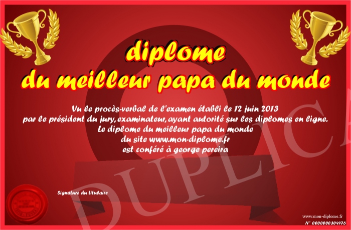 Envoyez par email votre diplome du meilleur papa du monde personalisé