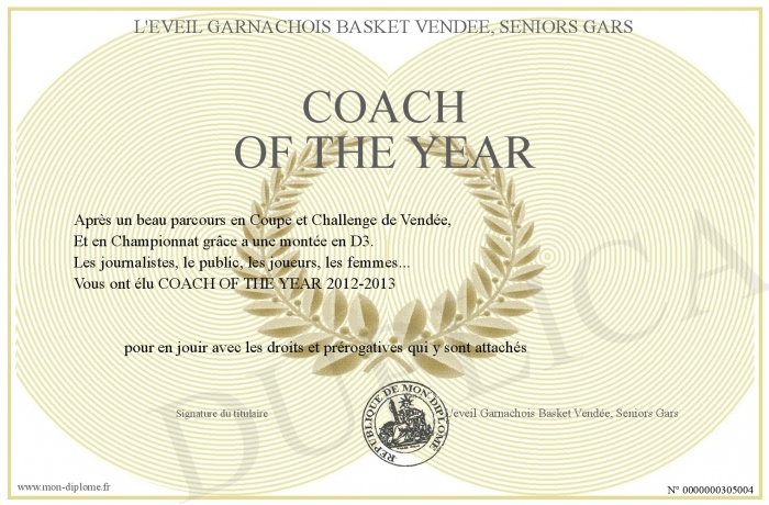 Envoyez par email votre COACH OF THE YEAR personalisé