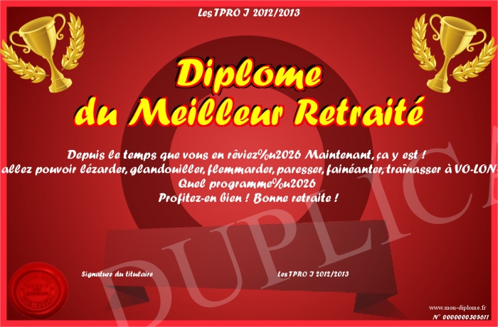 Envoyez par email votre Diplôme du Meilleur Retraité personalisé