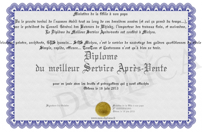 Envoyez par email votre Diplôme du meilleur Service Après-Vente personalisé