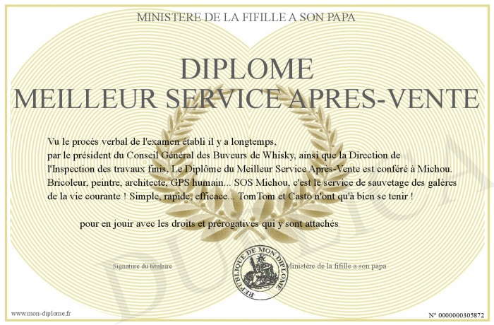 Envoyez par email votre Diplôme Meilleur Service Après-Vente personalisé