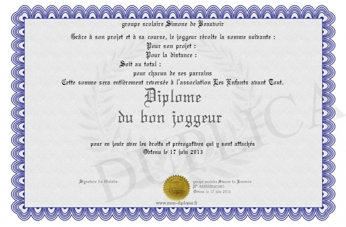 Envoyez par email votre Diplôme du bon joggeur personalisé