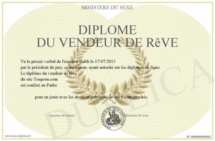 Envoyez par email votre Diplôme du vendeur de rêve personalisé