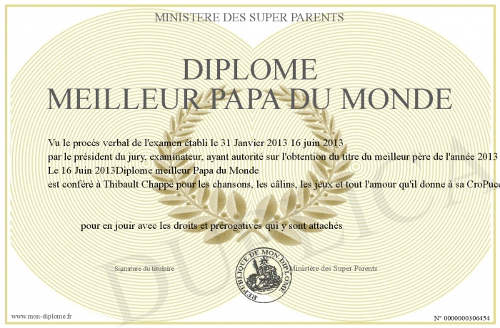Envoyez par email votre Diplôme meilleur Papa du Monde personalisé