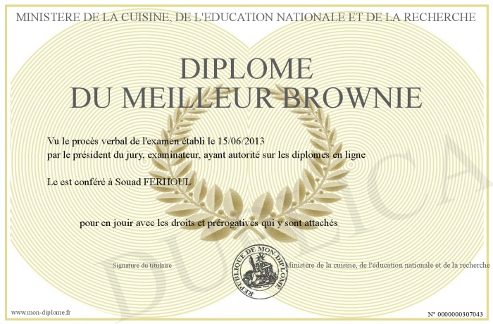 Envoyez par email votre Diplôme du meilleur brownie personalisé