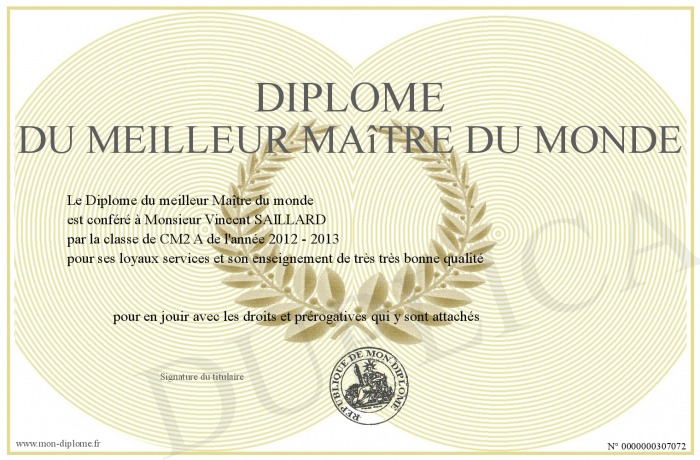 Envoyez par email votre Diplôme du meilleur Maître du monde personalisé