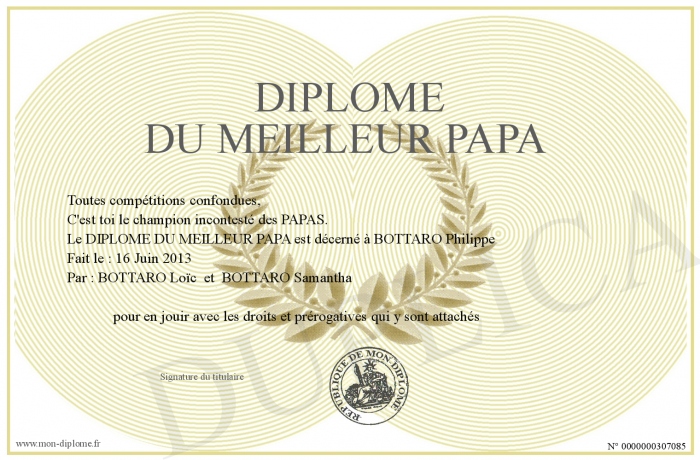 Envoyez par email votre DIPLOME DU MEILLEUR PAPA personalisé