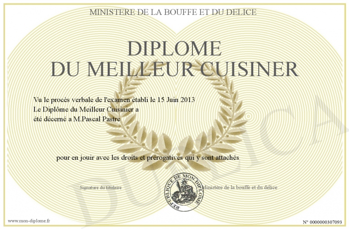 Envoyez par email votre Diplôme du Meilleur Cuisiner personalisé