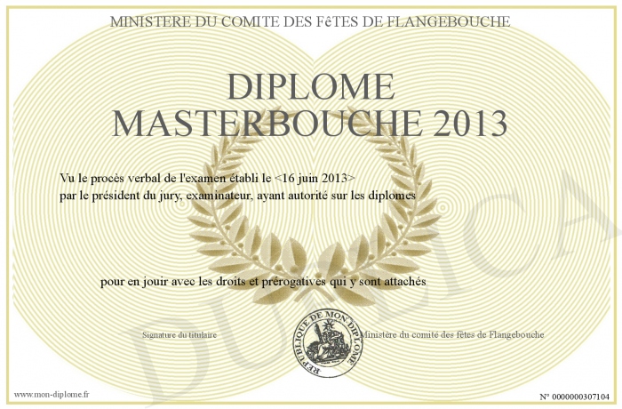 Envoyez par email votre Diplôme Masterbouche 2013 personalisé