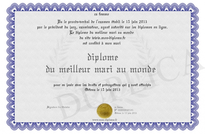 Envoyez par email votre diplome du meilleur mari au monde personalisé