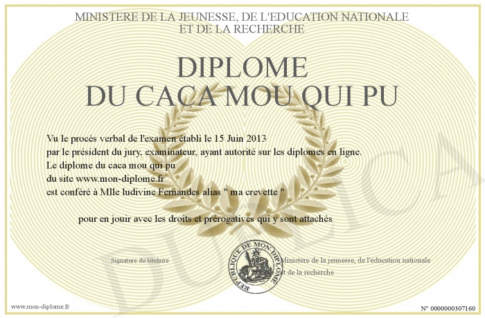 Envoyez par email votre Diplôme du caca mou qui pu personalisé