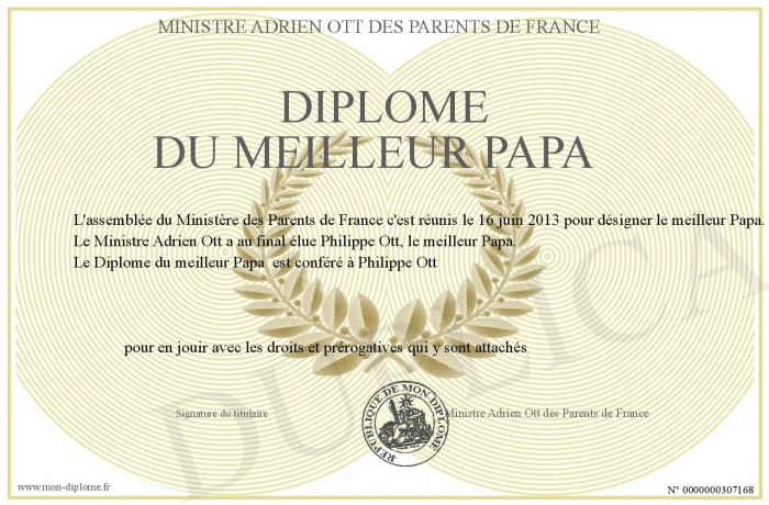 Envoyez par email votre Diplôme du meilleur Papa personalisé