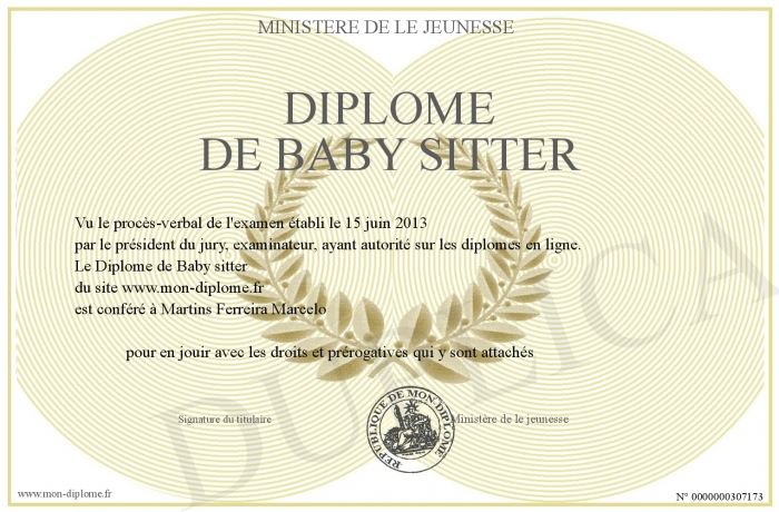 Envoyez par email votre Diplôme de Baby sitter personalisé