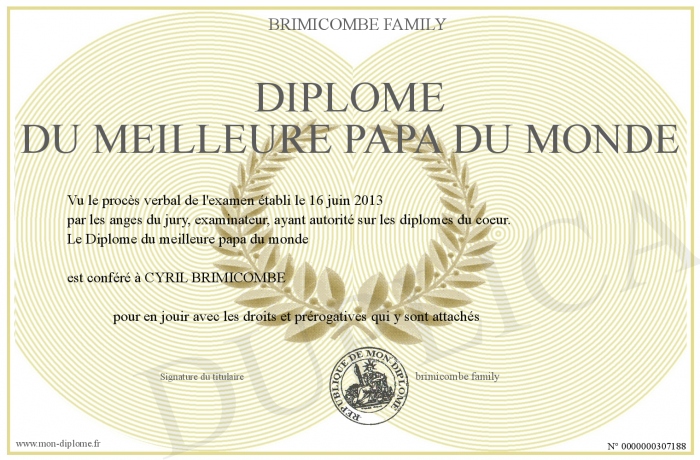 Envoyez par email votre Diplôme du meilleure papa du monde personalisé