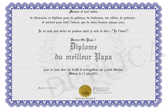 Envoyez par email votre Diplôme du meilleur Papa personalisé