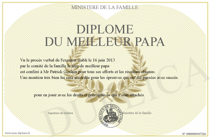Envoyez par email votre Diplôme du meilleur papa personalisé