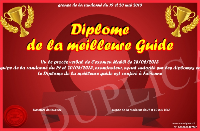 Envoyez par email votre Diplôme de la meilleure Guide personalisé