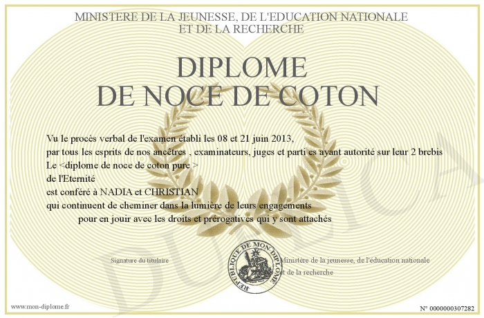 Envoyez par email votre Diplôme de noce de coton personalisé