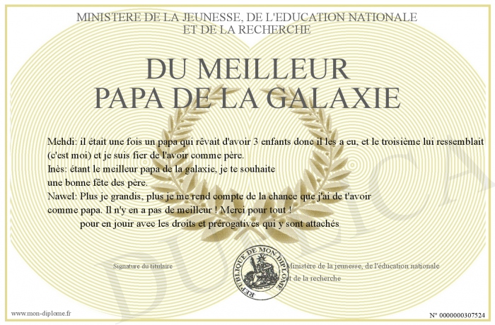 Envoyez par email votre du meilleur papa de la galaxie personalisé