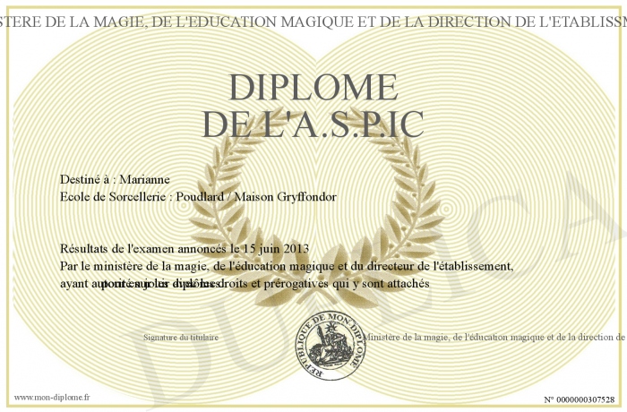 Envoyez par email votre Diplôme de l'A.S.P.IC personalisé