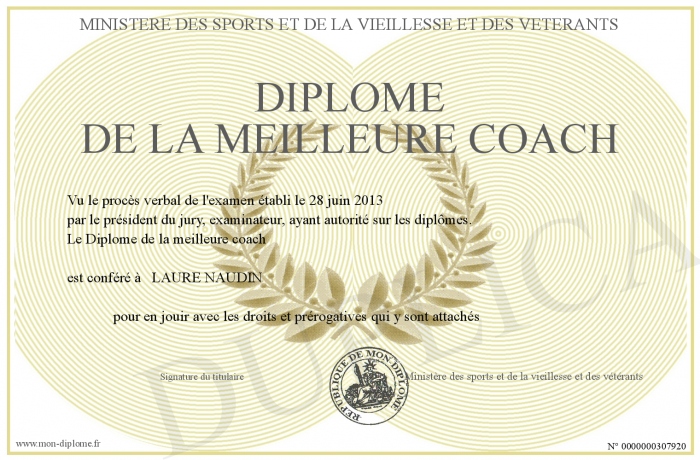 Envoyez par email votre Diplôme de la meilleure coach personalisé