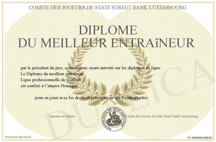 Envoyez par email votre Diplôme du meilleur entraîneur personalisé