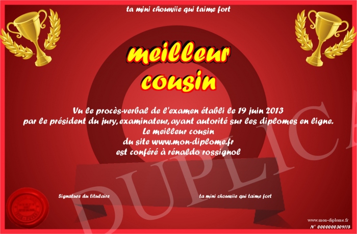 Envoyez par email votre meilleur cousin personalisé