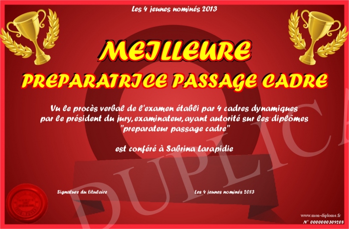 Envoyez par email votre MEILLEURE PREPARATRICE PASSAGE CADRE personalisé