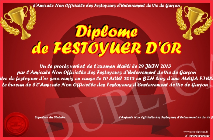 Envoyez par email votre Diplôme de FESTOYUER D'OR personalisé