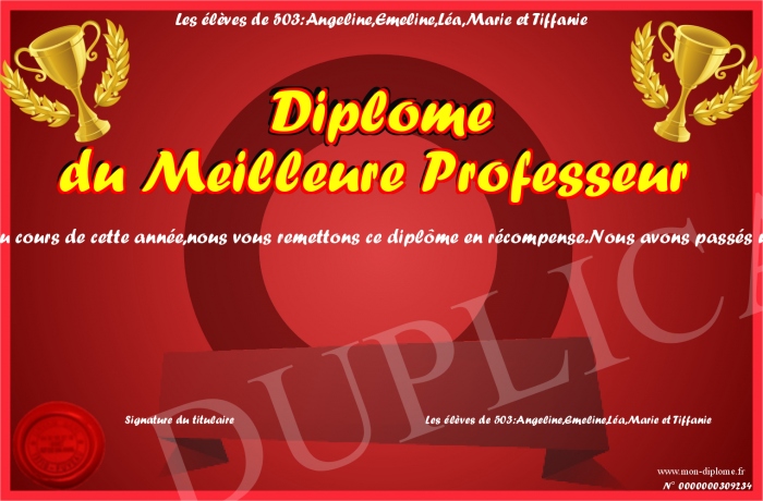 Envoyez par email votre Diplôme du Meilleure Professeur personalisé