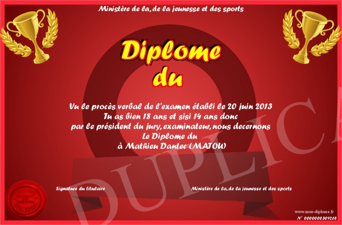 envoyé par le Ministère de la, de la jeunesse et des sports !