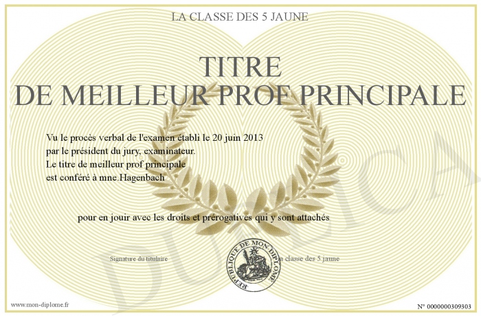 Envoyez par email votre titre de meilleur prof principale personalisé