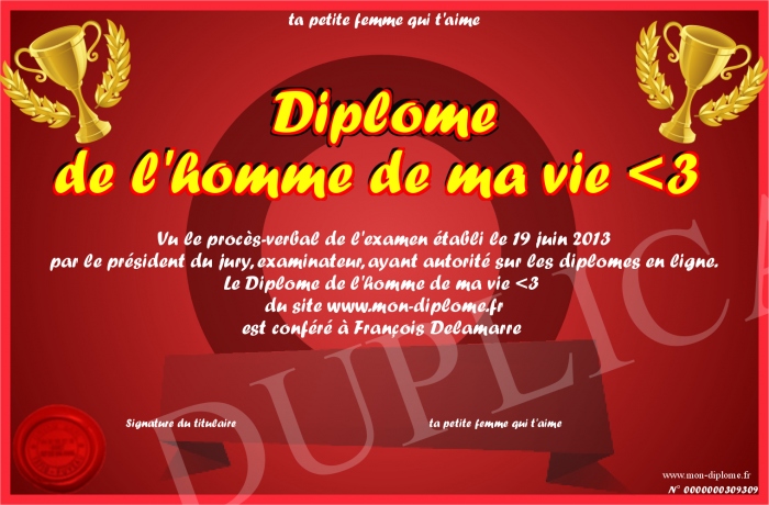 Envoyez par email votre Diplôme de l'homme de ma vie -3 personalisé