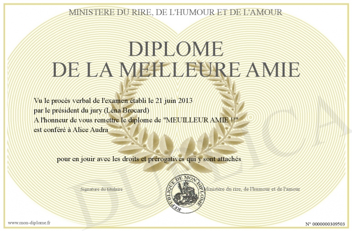Envoyez par email votre Diplome de la meilleure Amie personalisé